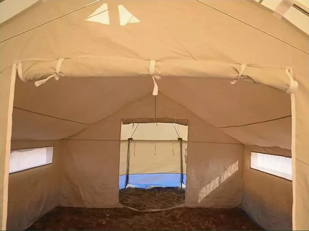 Стандартният модел Хуманитарна бежанска палатка е подходящ за семейства от 3-5 души. Външният размер на палатката е приблизително 6,5 m × 4,0 m, с полезна площ от приблизително 26 ㎡ и височина в центъра 2,2 m. Разпределението на вътрешното пространство е разумно, улесняващо живеенето и съхранението на консумативи. Палатката е подходяща за температури от -5 ℃ до 40 ℃, способна да се справи с различни климатични условия.
